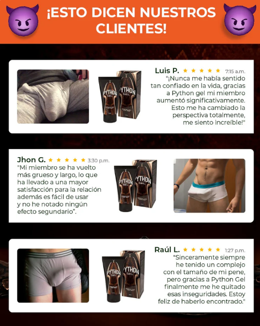 La fórmula avanzada de Python Max Gel está diseñada para ofrecer resultados visibles en semanas. Miles de clientes satisfechos reportan mejoras significativas desde las primeras aplicaciones. ¡Confía en la efectividad probada científicamente!