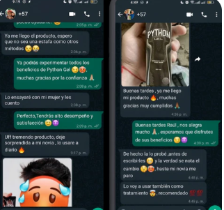 Muchos usuarios han experimentado un aumento en su confianza personal gracias a los beneficios tangibles del gel. "Python Max Gel cambió mi vida", afirma un cliente satisfecho.